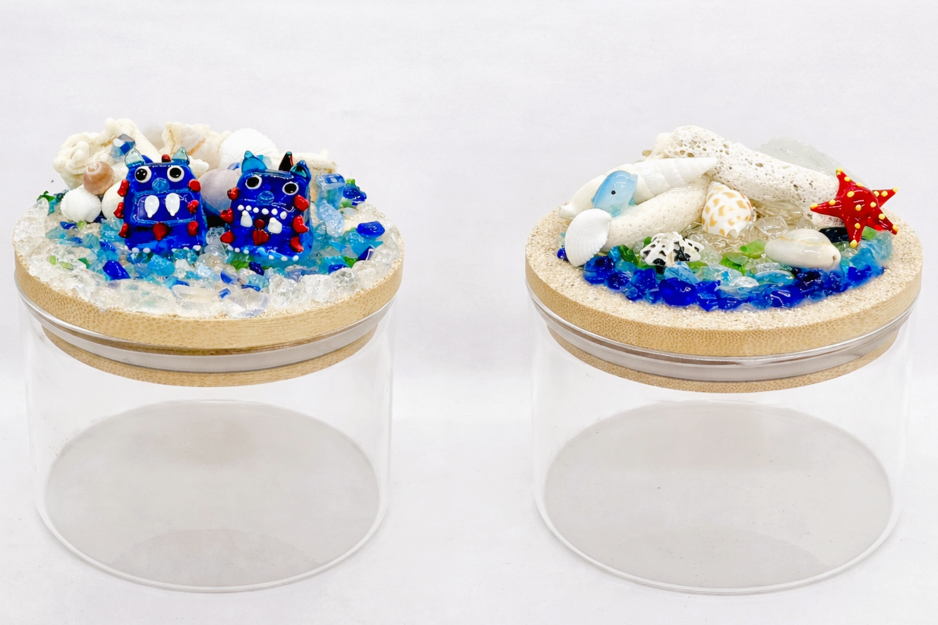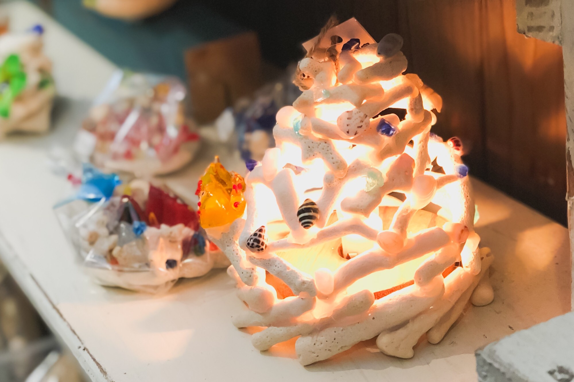 沖縄のサンゴを使いドーム状に組立て貝殻やシーグラスで飾り付けたランプシェードを作る体験です。*スタンド・電球・スイッチ一式セット(チケット料金に含まれるもの:体験料金(材料費込み)/こちらの体験はフリーゾーンでおこなわれるため琉球村への入園料は含まれておりません。) てぃだ家の体験一覧はこちら https://book.ryukyumura.co.jp/article/ti_daya.okinawa?lng=ja-JP